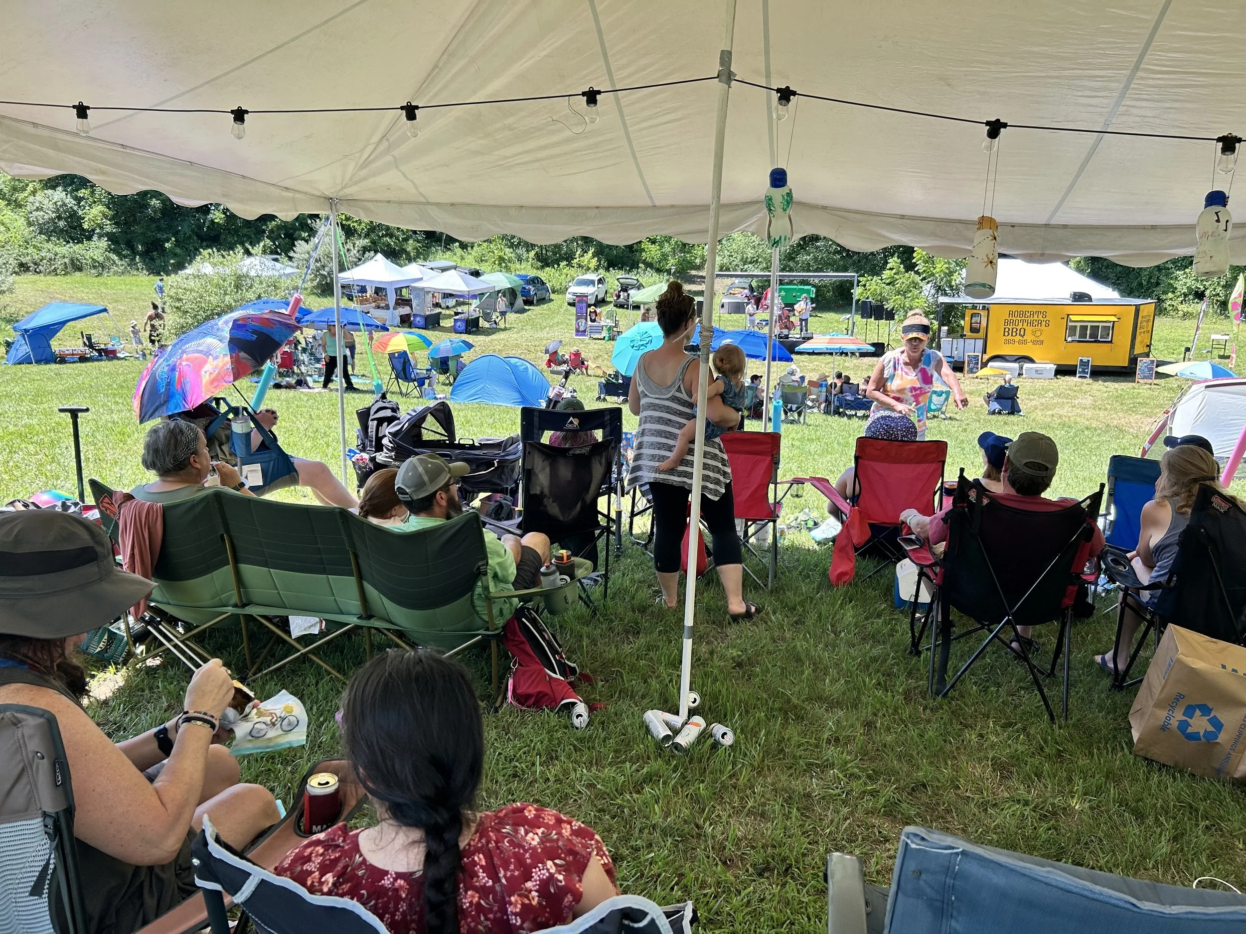 There are lovely trails in the woods, disc golf, sweet spots to read a book, chill and hang with friends, games, vendors to check out, and workshops.